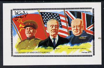 Oman 1974 Churchill Birth Centenary (Flags & Leaders) imperf souvenir sheet (2R value) unmounted mint