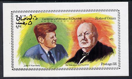 Oman 1974 Churchill Birth Centenary (With Kennedy) imperf deluxe sheet (5R value) unmounted mint
