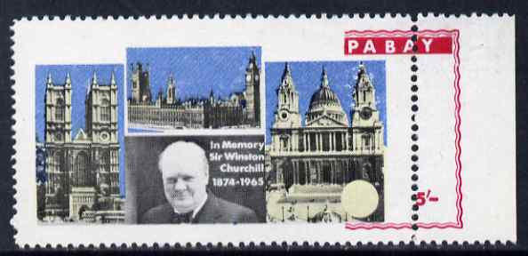 Pabay 1968 Churchill 5s marginal single from right hand side with red misplaced 9 mm to right and partly omitted, some offset otherwise unmounted and a spectacular error