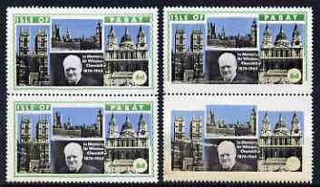 Pabay 1968 Churchill 6d perf vert pair with green partially omitted on upper stamp and completely omiited on lower stamp (including face value) due to a paper fold plus normal pair. Unmounted mint but some ageing