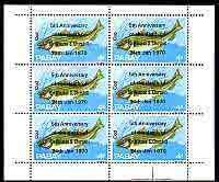 Pabay 1970 Fish 4d (Cod) complete perf sheetlet of 6 each opt'd '5th Anniversary of Death of Sir Winston Churchill' unmounted mint
