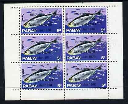 Pabay 1970 Fish 5d (Herring) complete perf sheetlet of 6 each opt'd '5th Anniversary of Death of Sir Winston Churchill' unmounted mint