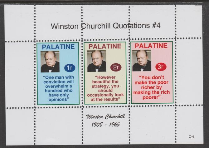 Palatine (Fantasy) Quotations by Winston Churchill #4 perf deluxe glossy sheetlet containing 3 values each with a famous quotation,unmounted mint