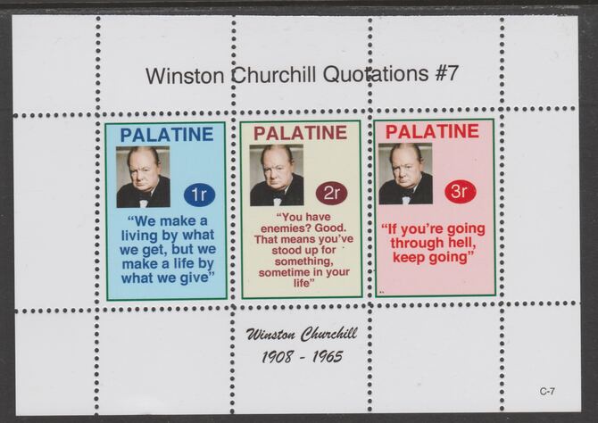 Palatine (Fantasy) Quotations by Winston Churchill #7 perf deluxe glossy sheetlet containing 3 values each with a famous quotation,unmounted mint