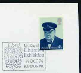 Postmark - Great Britain 1974 card bearing illustrated cancellation for Last Day of Churchill Exhibition (London)
