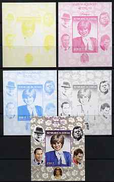 Senegal 1998 Princess Diana 200f imperf m/sheet #07 the set of 5 progressive proofs comprising the 4 individual colours plus all 4-colour composite, unmounted mint