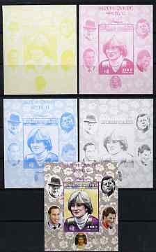 Senegal 1998 Princess Diana 250f imperf m/sheet #10 the set of 5 progressive proofs comprising the 4 individual colours plus all 4-colour composite, unmounted mint
