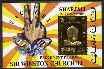Sharjah 1972 (?) Churchill 6r m/sheet with main design embossed in gold unmounted mint