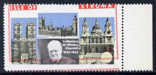 Stroma 1968 Churchill 6d marginal single with red (frame) misplaced upwards by 3 mm slight offset otherwise unmounted and spectacular