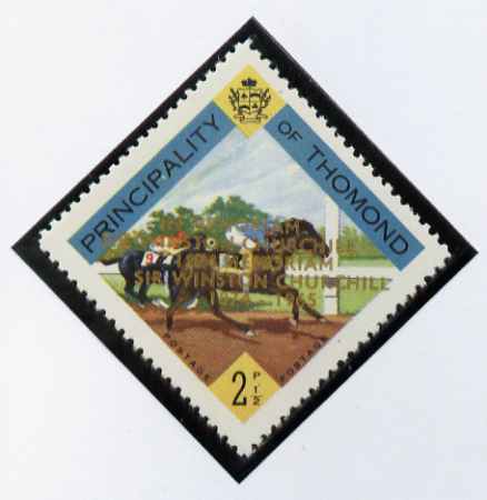 Thomond 1965 Horse Racing 2.5d (Diamond-shaped) with 'Sir Winston Churchill - In Memorium' overprint in gold with opt doubled unmounted mint*