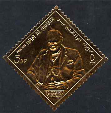 Umm Al Qiwain 1966 Churchill Commemoration diamond shaped 5np embossed in gold foil unmounted mint, as Mi 68B
