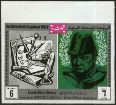 Yemen - Royalist 1969 Famous Men of History 6b Churchill from imperf set of 11 unmounted mint, Mi 848B*