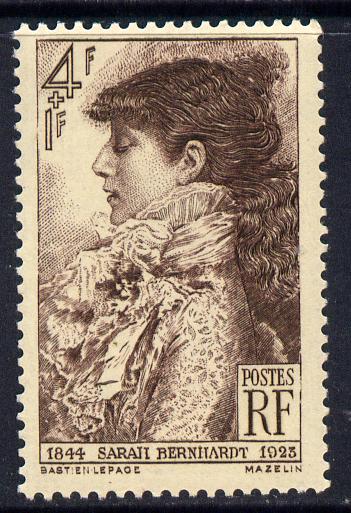 France 1945 Birth Centenary of Sarah Bernhardt (actress) 4f+1f purple-brown unmounted mint SG 950
