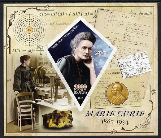 Madagascar 2013 Marie Curie imperf deluxe sheet containing one diamond shaped value unmounted mint