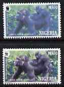 Nigeria 2008 WWF - Gorilla N100 perf essay trial with an overal bluish colour, very thick lettering and without imprint, unmounted mint but some ink offset plus normal.