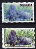 Nigeria 2008 WWF - Gorilla N50 perf essay trial with an overal bluish colour, very thick lettering and without imprint, unmounted mint but some ink offset plus normal.