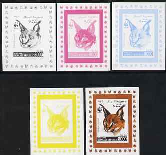Somalia 1998 WWF - Caracal 8,000s the set of 5 imperf progressive proofs comprising the 4 individual colours plus all 4-colour composite, unmounted mint