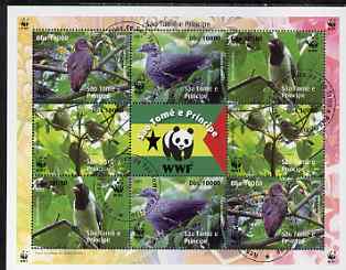 St Thomas & Prince Islands 2005 WWF - Local Bird Species perf sheetlet containing 2 sets of 4 plus label fine cto used