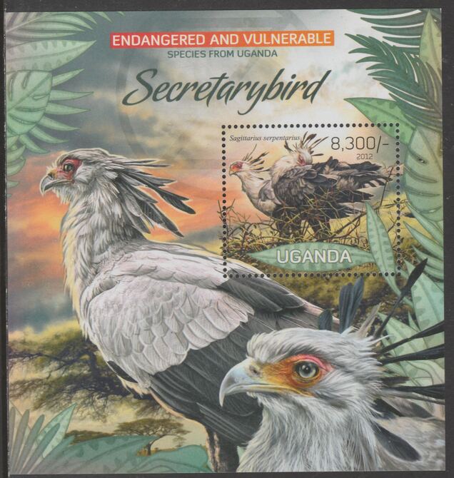 Uganda 2012 Endangered Species - Secretary Bird #2 perf souvenir sheet,containing 1 value unmounted mint.