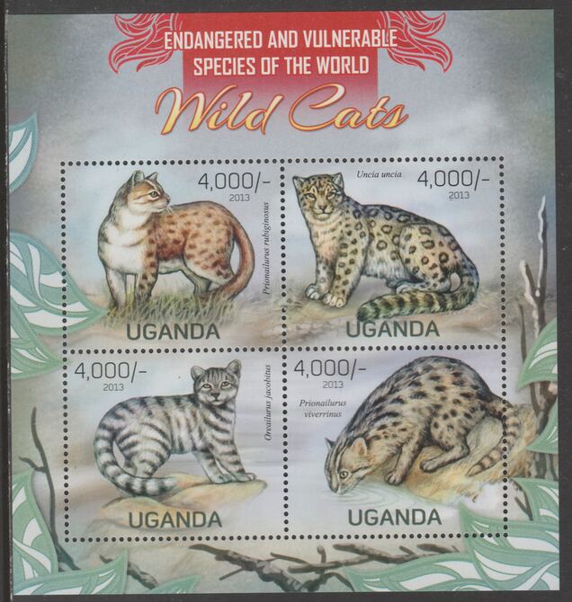 Uganda 2013 Endangered Species - Wild Cats perf sheetlet containing 4 values unmounted mint.